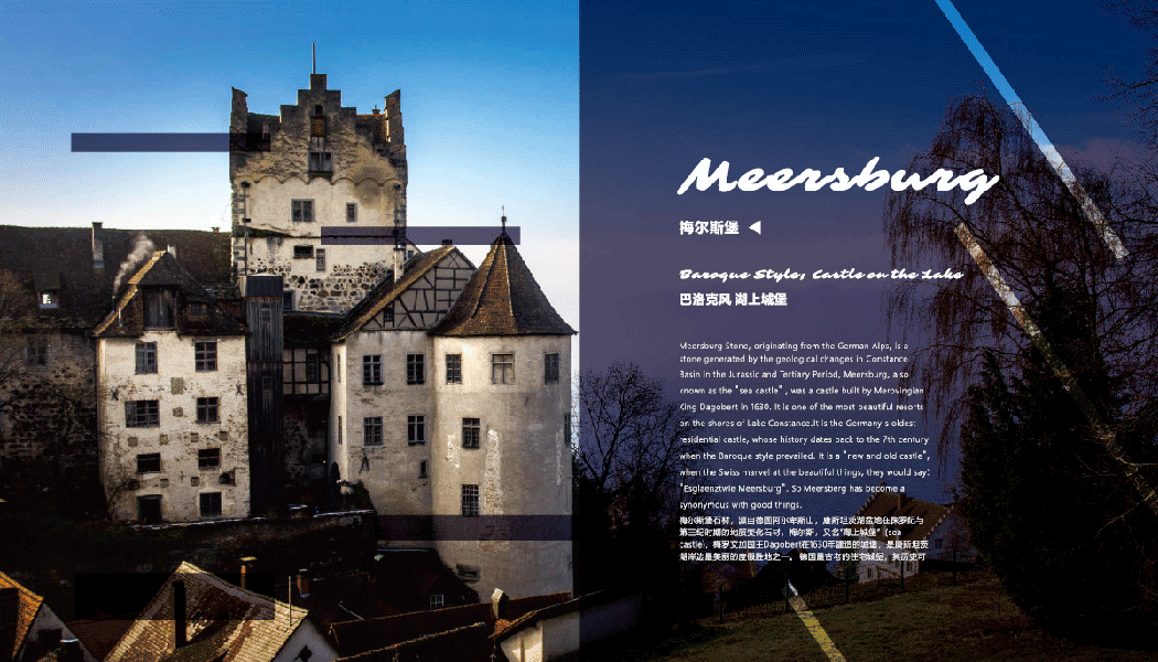 德國最古老的住宅城堡,其歷史可以追溯到公元7世紀(jì)巴洛克風(fēng)格的“新舊城堡”瑞士人驚嘆漂亮美麗時(shí)會(huì)說:“EsglaenztwieMeersburg” 梅爾斯堡已經(jīng)成為美好事物的代言詞。
